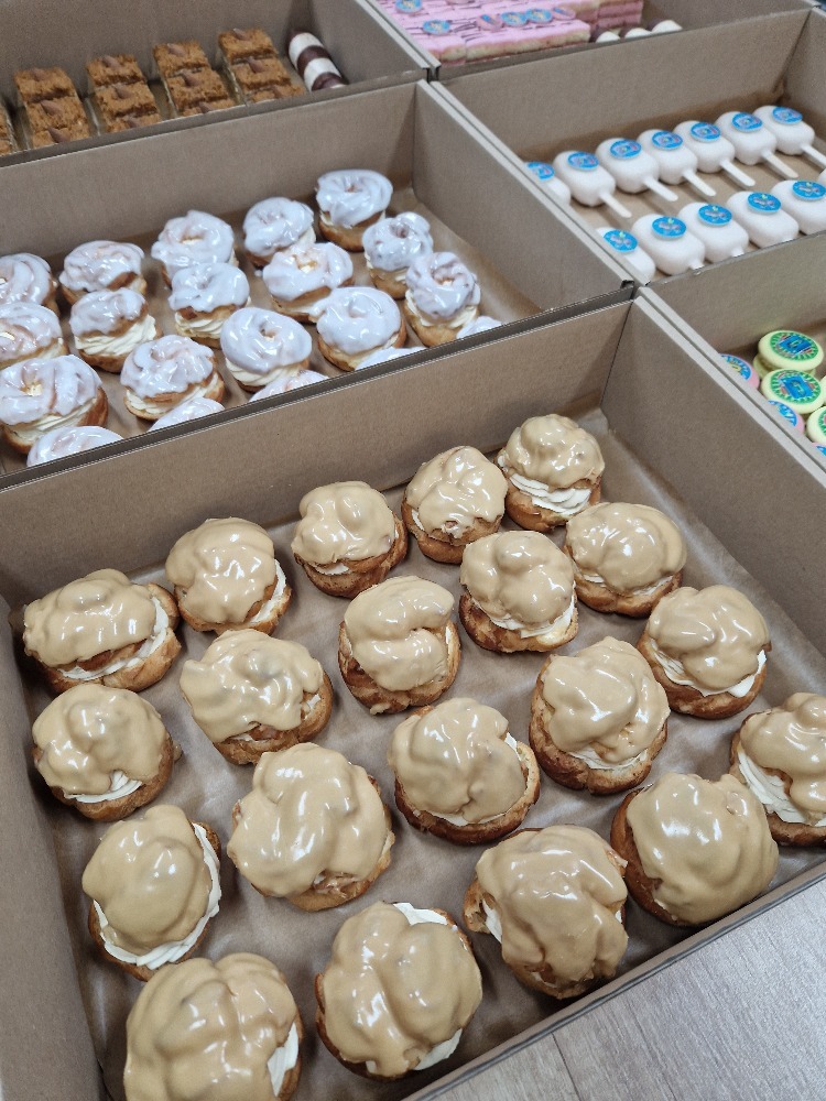 Minimální odběr "klasických velikostí" od jednoho druhu a jedné příchutě je 10 ks. Minimální odběr "mini zákusků" od jednoho druhu a jedné příchutě je 20 ks.